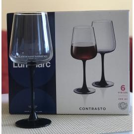 Набор состоит из 6-ти бокалов для вина на черной ножке, серии CONTRASTO, объёмом 350мл. Производитель Luminarc. Материал - стекло. Подарочная упаковка. Посуду данной серии можно использовать в посудомоечной машине.
